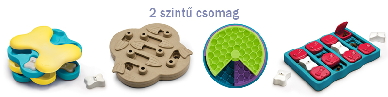 A 2. szintű játékokkal elkezdhetjük megalapaozni a töblépéses, kicsit összetettebb feladatokat. Ha az 1. szintű játékokat túl könnyűnek találod nyugodtan kezdhetsz ezekkel a játékokkal is, hiszen minden 2. szintű nehézségi játékban van könnyítési lehetőség és még nem a legbonyolultabb dolgokkal kell megbírkózni, így nagyon szokták élvezni és szeretni ezeket a játékokat is akár kezdő kutyusok is.