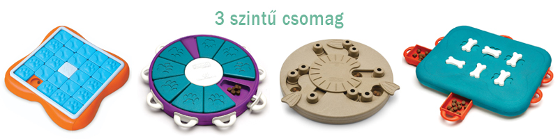 A 3. nehézségi szintű játékok sok lehetőséget és kihívást rejtenek a kutyák számára. Nagyszerűen fejlesztik problémamegoldó képességüket és töblépéses feladatok megoldását, miközben leköti őket és élvezetes játékot is biztosít. Mindegyik játékot tudja a gazdi könnyíteni, hogy segítse a tanulási folyamatot és a kutya sikerélménye és ezáltal motívációja folyamatos legyen.